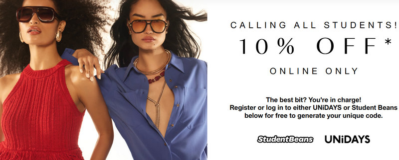 Verified via Student Beans or UNiDAYS on full-price fashion items. |