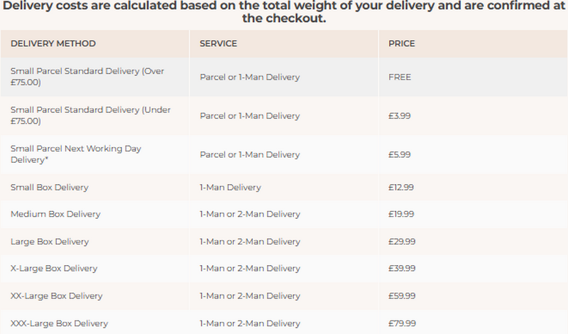 - Free UK Delivery: Standard delivery (typically 3-5 working days via Evri) is free on orders over £50. Orders under £50 incur a £3.99 standard delivery fee.