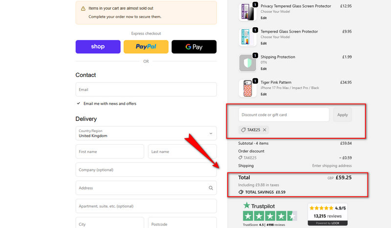 - Step 4: At checkout, apply the code in the discount or promo box.