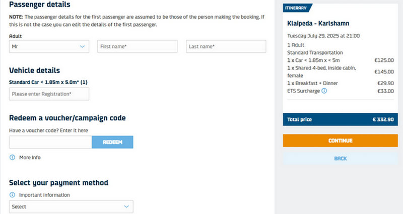 - On the DFDS booking engine, enter the journey details.